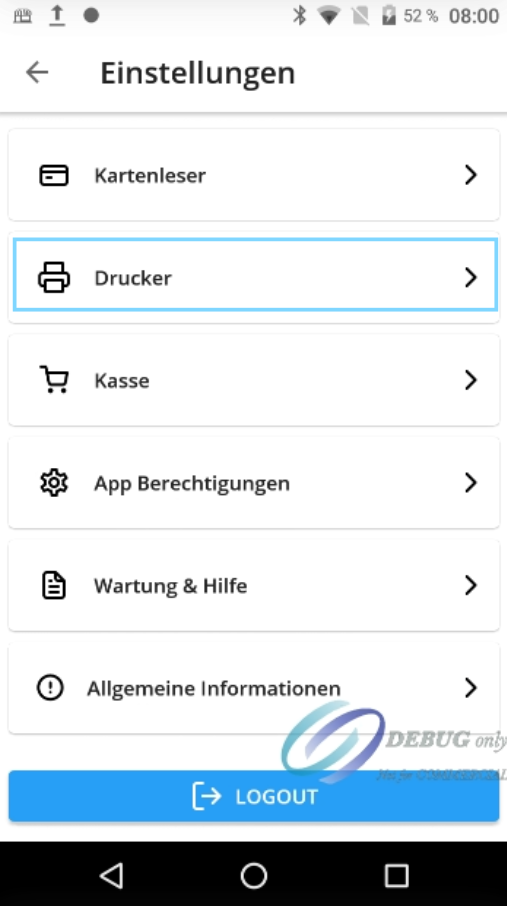 Öffnen Sie den Bereich „Drucker“. Hier können Sie den automatischen Ausdruck deaktivieren. Wenn diese Funktion ausgeschaltet ist, wird bei einem Verkauf kein Beleg mehr automatisch gedruckt. Diese Einstellung ist sinnvoll, wenn Belege nur bei Bedarf ausgegeben werden sollen.