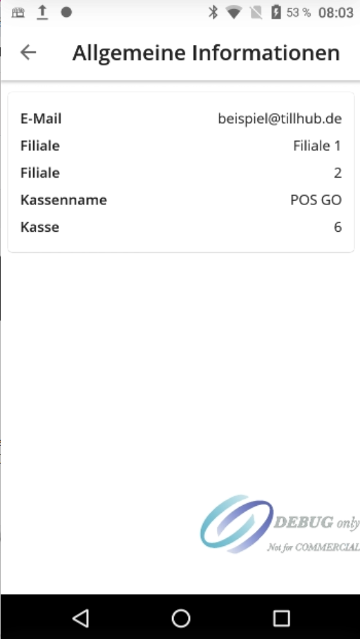 Im Bereich „Allgemeine Informationen“ finden Sie wichtige Systemdaten der Kasse. Hier können Sie einsehen, welche Filiale aktuell angemeldet ist und welche Kasse verwendet wird. Das ist besonders hilfreich, wenn mehrere Standorte oder mehrere Kassen im Einsatz sind.